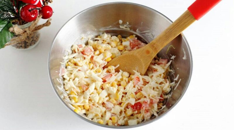 2. Mayonnaise als Bindemittel: Verwenden Sie Mayonnaise sparsam, um den Salat zu bestreichen und eine glatte Basis zu schaffen. Es braucht nicht viel, damit die Dekorationen zusammenhalten. Eine zu dicke Mayonnaiseschicht schwächt den Farbkontrast und lässt den Gemüsesalat schwer wirken.